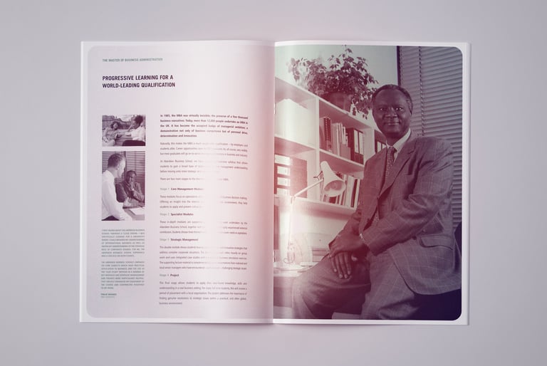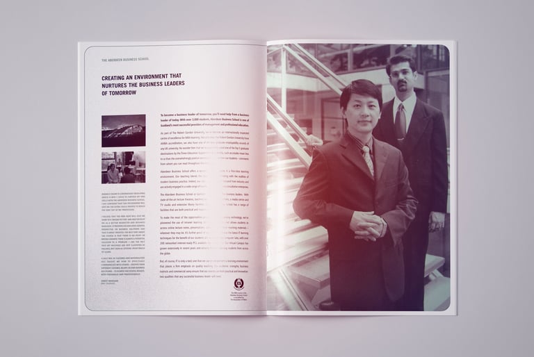 Aberdeen Business School is a key part of the ongoing success of The Robert Gordon University. Named Business School of the Year in 2020, the School provides outstanding business education, helping create top quality, industry-leading graduates. The design concept for the prospectus focused on the impact of the School’s graduates on the sectors they join. Clear, direct messaging is married with modern on-campus photography of past students to create a prospectus designed to inspire and engage.