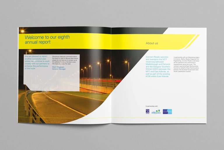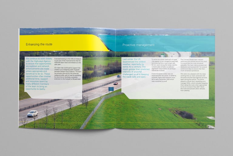 Connect Roads is one of the UK’s largest private sector road operators, responsible for the development and maintenance of a wide range of motorways, major trunk roads and major street lighting projects. We oversaw the design of an annual report for each its road contacts. These vital documents communicated highlights from that year’s road management and communicated key information to local and national stakeholders.