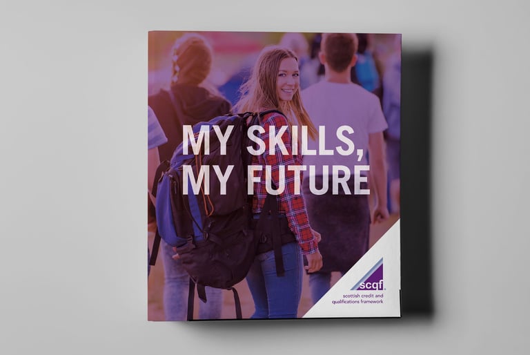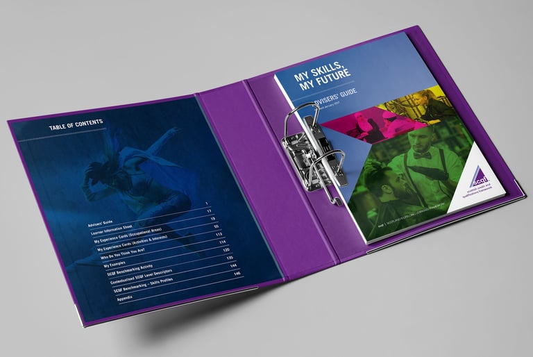 Straightline Creative were enlisted to completely rebrand and repackage the The Scottish Credit and Qualifications Framework’s key training toolkit. 'My Skills, My Future' is a toolkit for advisers who want to help people identify the skills they have gained from other experiences outwith formal qualifications. The resources are aimed primarily at young people who have left, or may be about to leave, school with few or no formal qualifications.