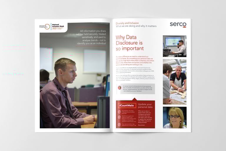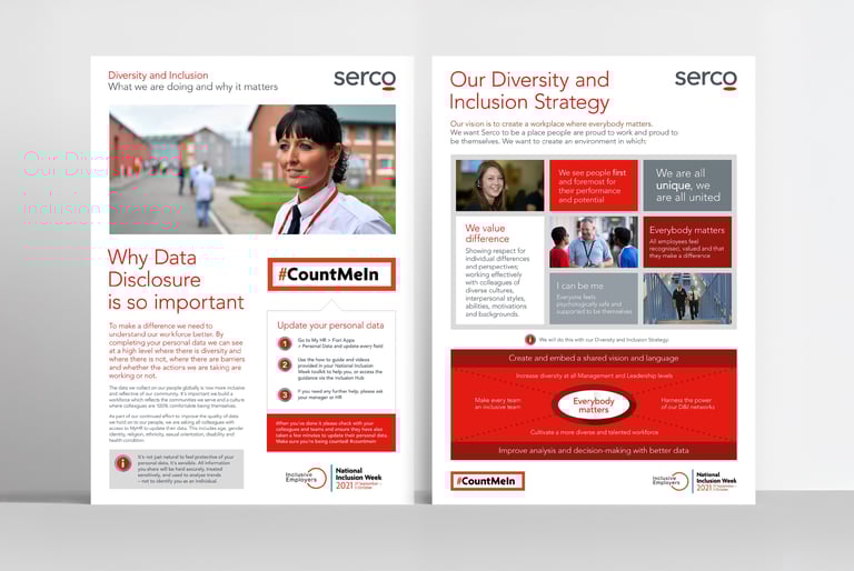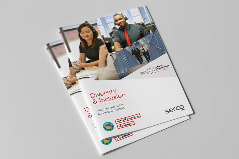 As a modern, dynamic employer Serco is rightly proud of its Diversity and Inclusion policies – supporting the individual excellence of every member of their team. Straightline was employed to design a wide range of promotional materials to support Serco’s annual National Inclusion Week. From brochures and leaflets, to virtual events calendars and digital assets, we helped create a suite of assets which helped ensure campaign success.