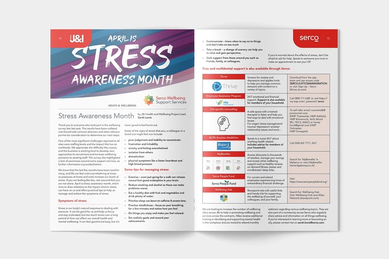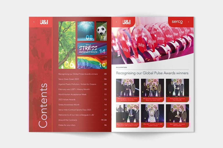 Straightline Creative was enlisted to produce a quarterly staff newsletter for Serco’s Justice & Immigration staff. Key to our successful approach was the development of a new design style which dovetailed with Serco’s brand guidelines, improved internal communication and boosted levels of employee engagement. As part of the creative brief, we created a new name and masthead alongside a contemporary design style that was engaging, informative and modern in design.