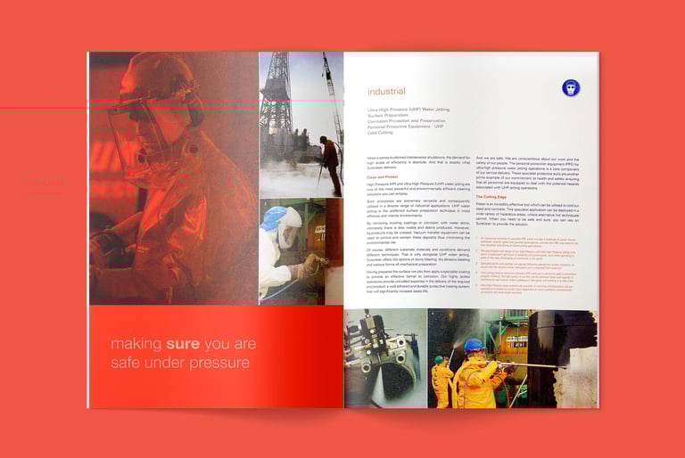 Sureclean provide an incredibly vital support service within the energy sector. From asbestos removal to high-pressure cleaning, their operations are potentially hazardous and require only the best, only the most experienced. This need for certainty was my key inspiration. Sureclean – for when you need to be sure. The design was bold and vivid taking its style cue from the safety signage and industrial product design. The copy platform was also developed to expand on the sure theme using a new sentence to introduce each new section in a creative way.