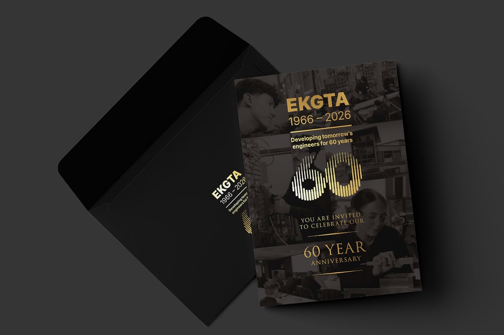 Straightline were approached to design a new brand identity to celebrate EKGTA's 60 year Anniversary. The logo was inspired by the world of engineering: its machine gears, shapes and forms. The matching event invitation was also designed incorporating premium print finishes to reflect the high-profile nature of the event. Here's to another 60 years!